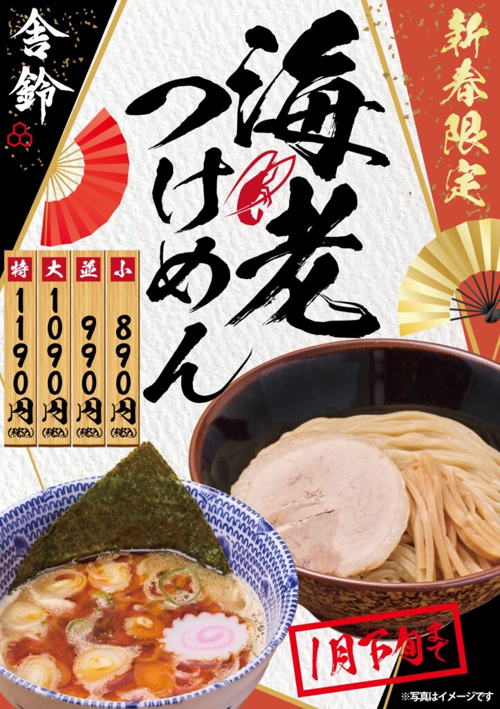 2026年1月5日(月)より、季節限定で舎鈴の「海老つけめん」を販売いたします。