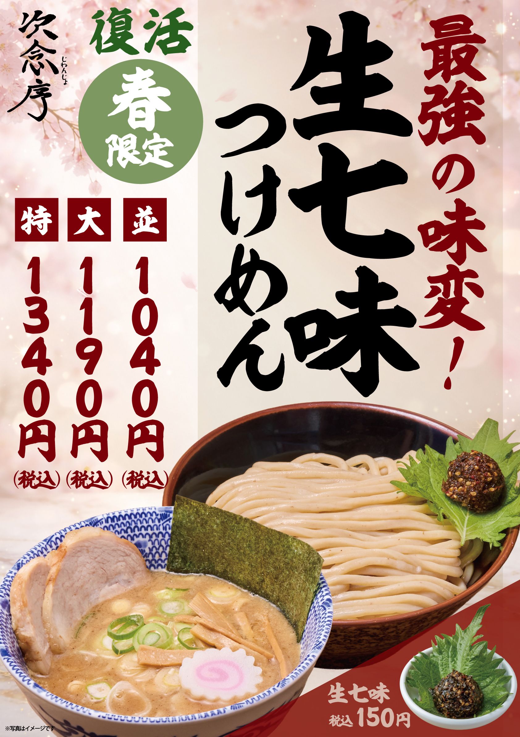 2026年3月4日(水)より、季節限定メニュー「生七味つけめん」を販売いたします。