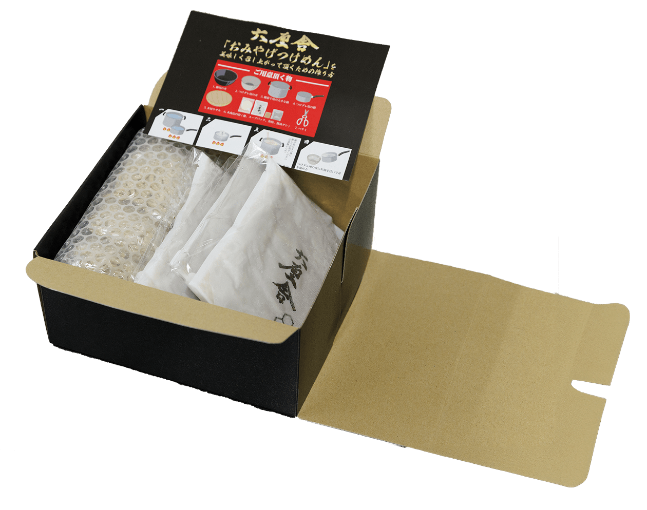 工場内ではスープやチャーシュー、ぎょうざなどの製造に加え、通販でご注文いただいた商品の箱詰めから発送までを一貫して担当。商品が届いた瞬間から安心して楽しんでいただけるよう、梱包にも細心の注意を払っています。