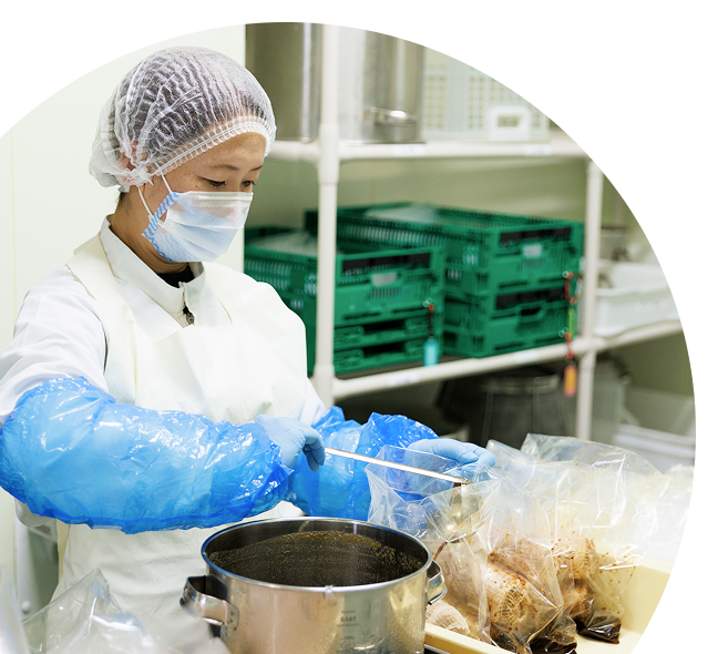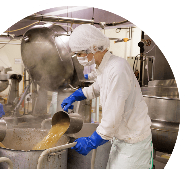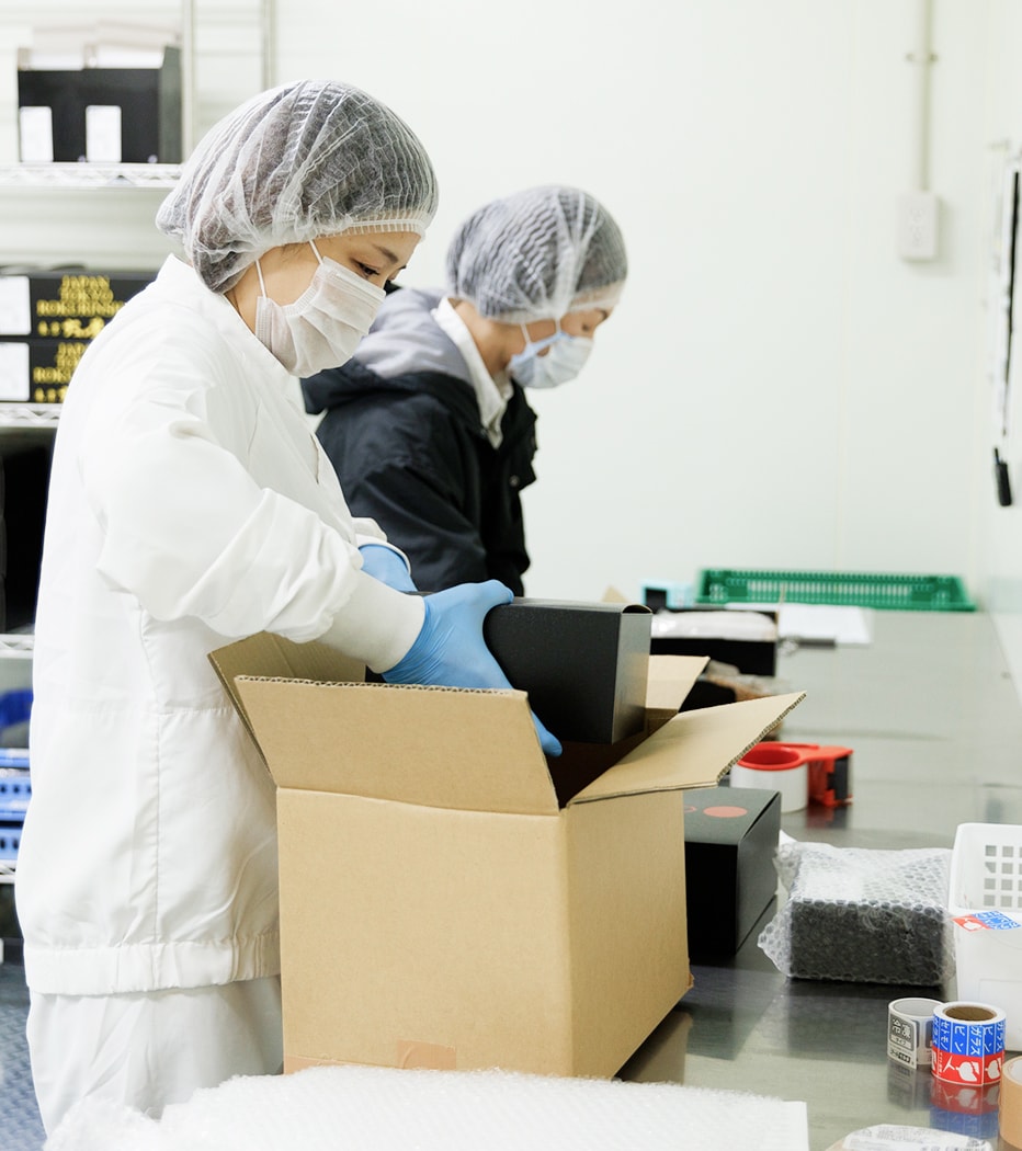 厳選した素材を、仕込みから製造・発送まで一貫体制で管理。職人の感覚を尊重しつつ、最新設備と科学的な品質管理を組み合わせることで、どの店舗やご家庭でも変わらない美味しさをお届けしています。