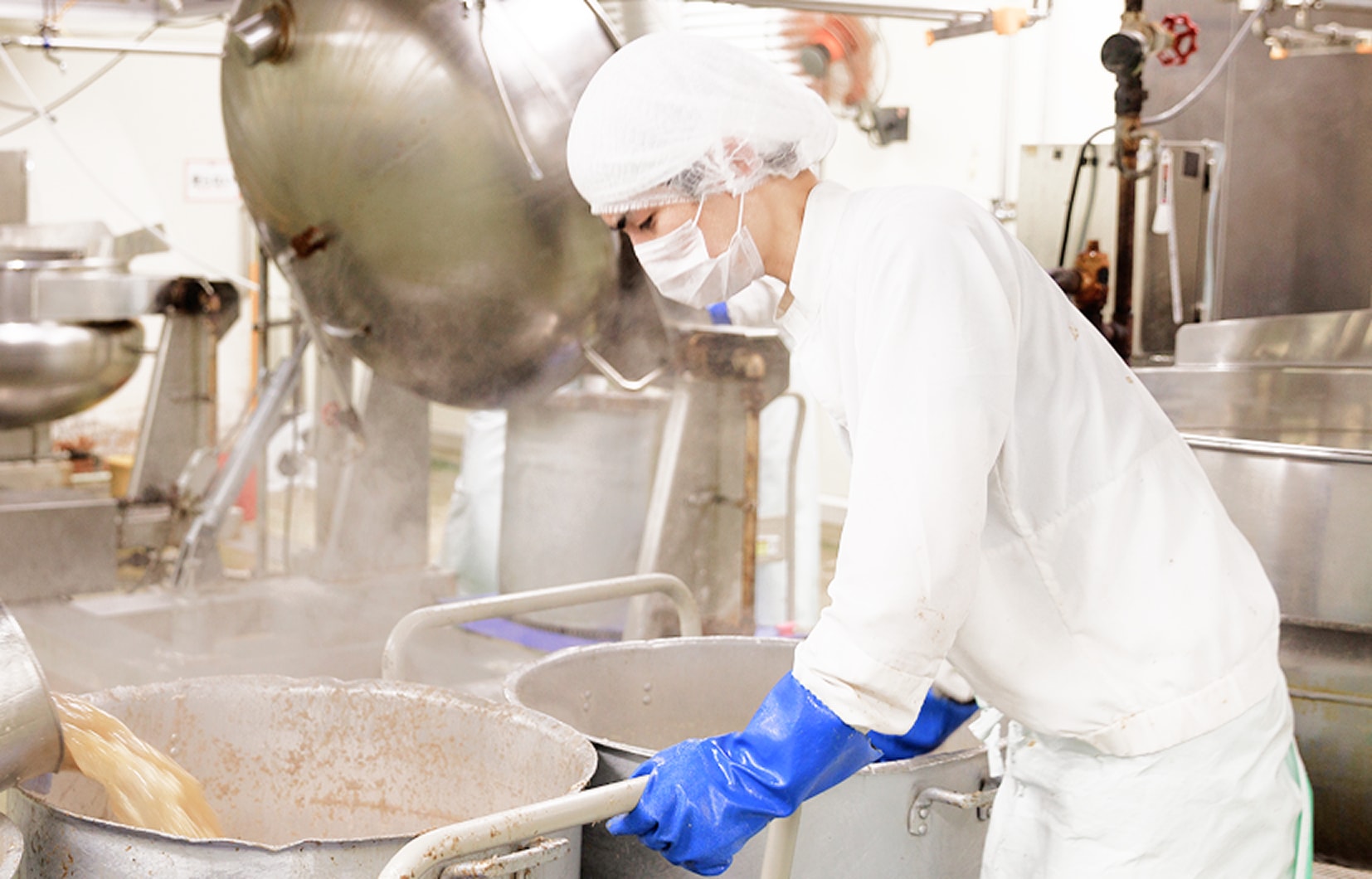 各工程での品質管理、温度管理、衛生管理、安全管理等の管理業務。